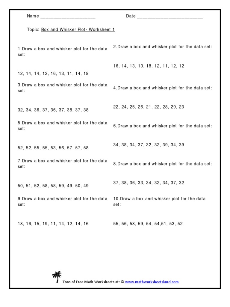 Interpreting categorical and quantitative data. Found worksheet you are looking for? It is used to visually display the variation in a data set through a graphical method. In a box plot, we draw a box from the first quartile to the third quartile. In these worksheets, students will work with box and whisker plots. Then they will apply what they learn. Using worksheet, educators no longer need certainly to trouble to get questions or questions. Known as box plots, box and whisker diagrams, the box and whisker plots are one of the many ways of representing data. Quickly access your most used files. The nature of box and whisker plot worksheet 1 in education. Top every test on box and whisker plots with our comprehensive and exclusive worksheets. What are box and whisker plots? Box and whisker plots are also very useful when large numbers of observations are involved and when two or more data sets are being compared.